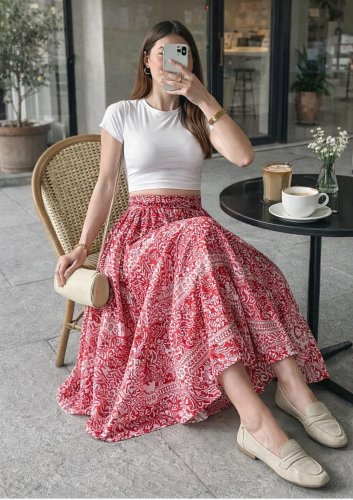 Kadın yüksek bel yandan büzgülü alttan uzun kaşkorse tayt etek