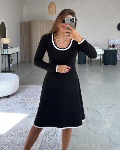 • Kadın uzun kollu yuvarlak yaka midi viskon iki iplik elbise