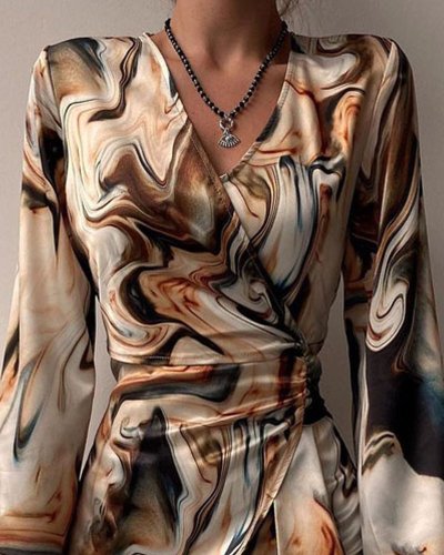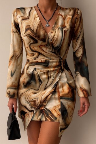 • Kadın uzun kollu kruvaze yakalı asimetrik detaylı mini modal elbise