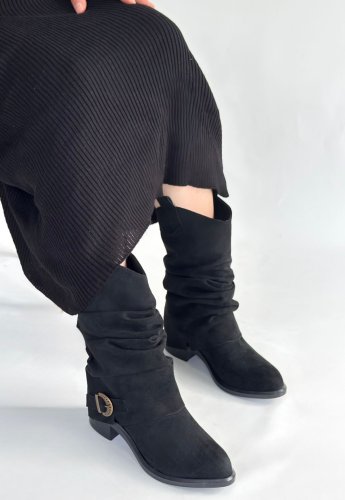 Canty Siyah Süet Körüklü Topuklu Çizme