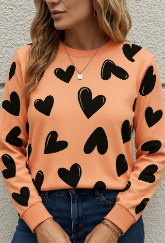 • Kadın uzun kollu bisiklet yaka kalp desenli iki iplik bluz
